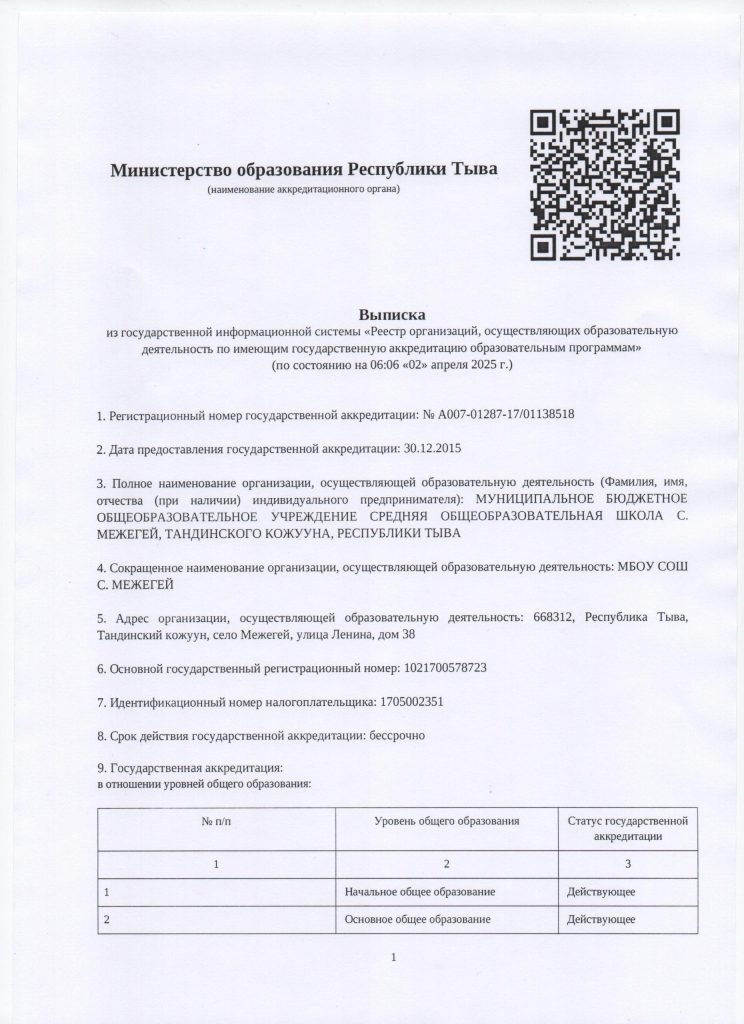 В МБОУ СОШ с. Межегей предписаний органов за последние 3 года не было