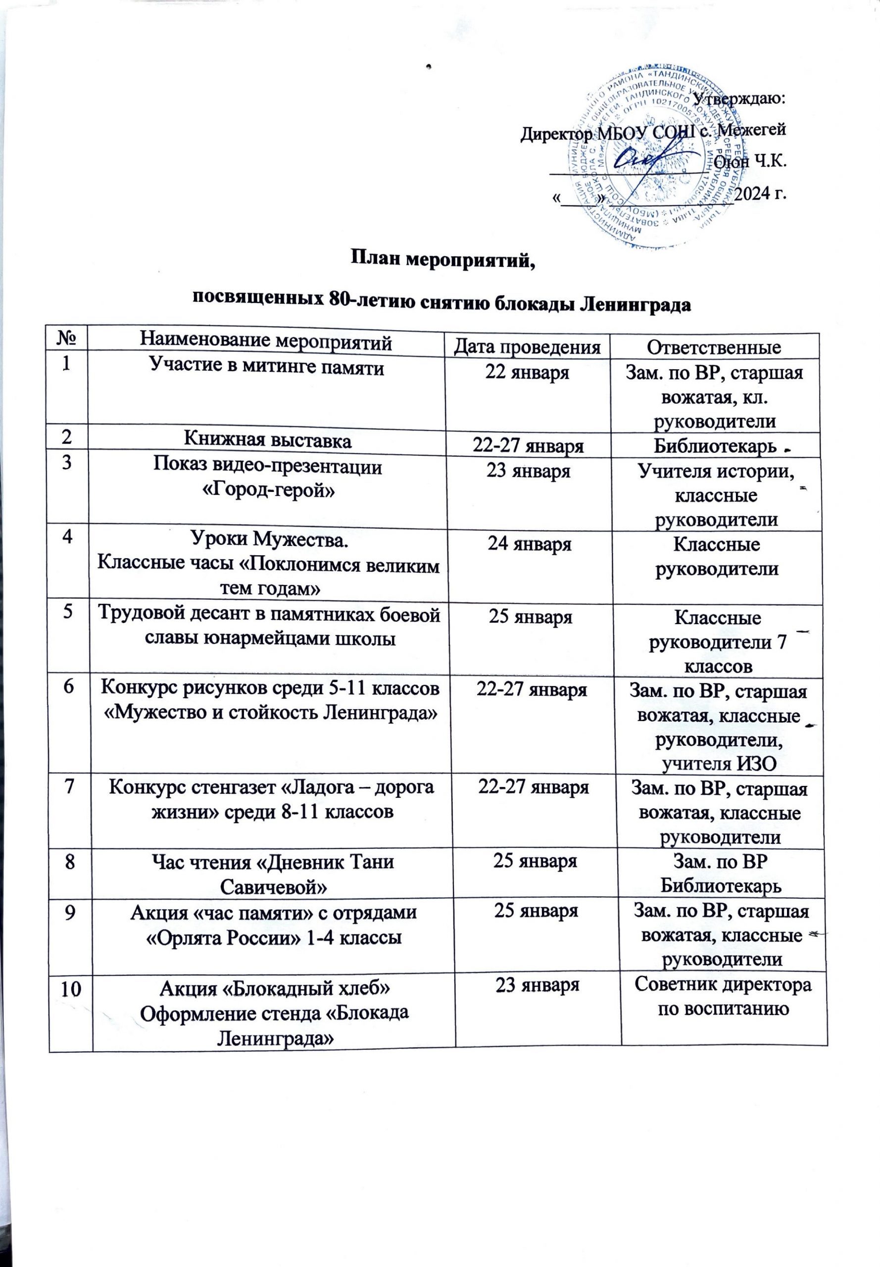 Планы по воспитательной работе Неделя правовых знанийСкачать План мероприятий посвященных к 80-летию снятию блокады ЛенинградаСкачать Неделя психологииСкачать План воспитательных мероприятийСкачать План работы по профилактике девиантного поведения несовершеннолетнихСкачать Профилактическая акция «Внимание дети»Скачать Положение ШВРСкачать План работы совета по профилактике правонарушенийСкачать План совместных мероприятийСкачать План работы школьной службы медаицииСкачать План работы по профилактике детского дорожно-транспортного травматизмаСкачать План мероприятий по профилактике ранней беременности среди несовершеннолетних обучающихсяСкачать План работы по профилактике жестокого обращения с детьмиСкачать